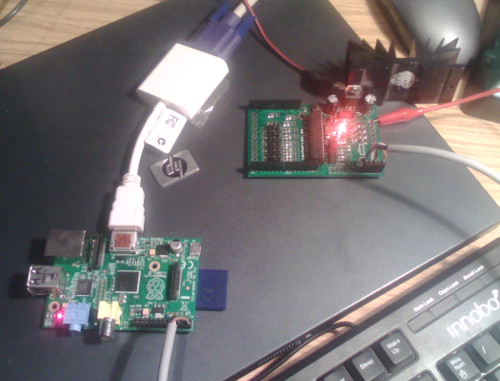 El primer test de funcionamiento combinado con el Raspberry fue alimentar este desde el prototipo y probar a comunicarse mediante el puerto serie del GPIO con el microcontrolador corriendo el sof original del Telemetrino.